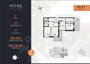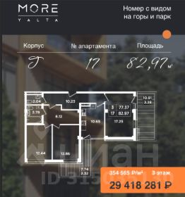 Площадь апартамента — 82,97 кв.м.