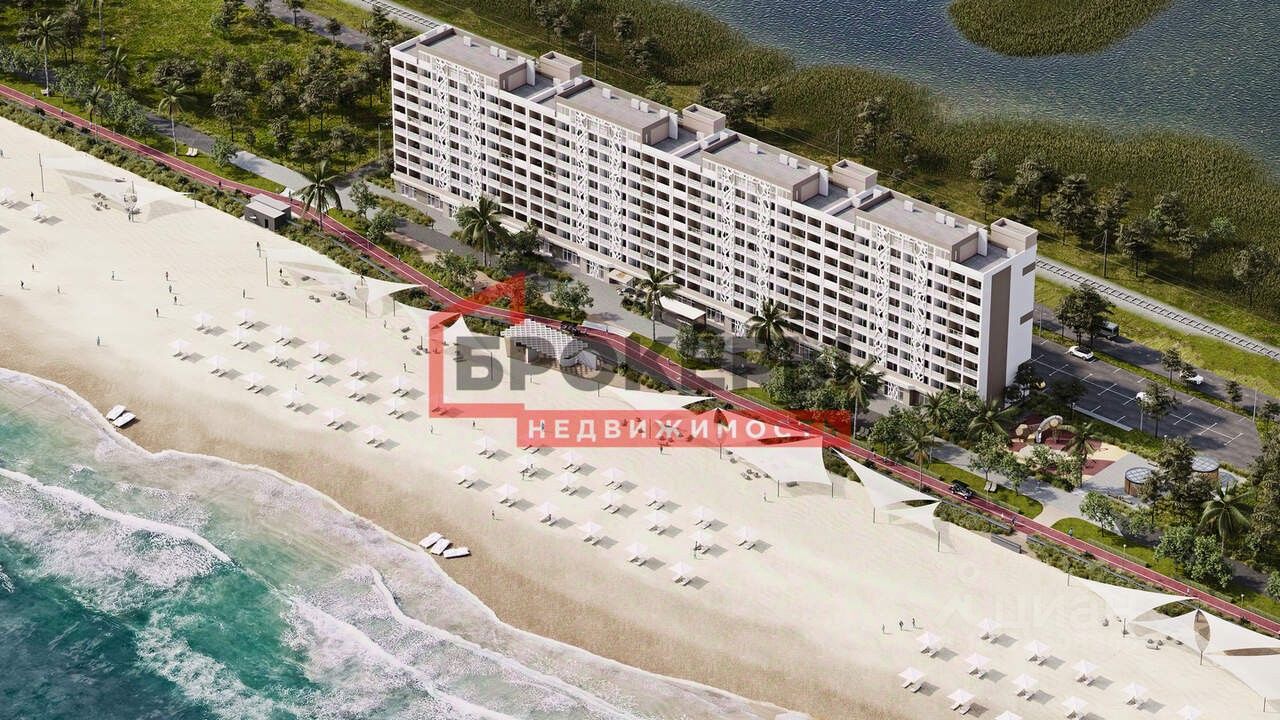 Здание апарт-отеля расположено вдоль прибрежной полосы, в границах легендарного курорта "Золотые пески России" на побережье Черного моря.