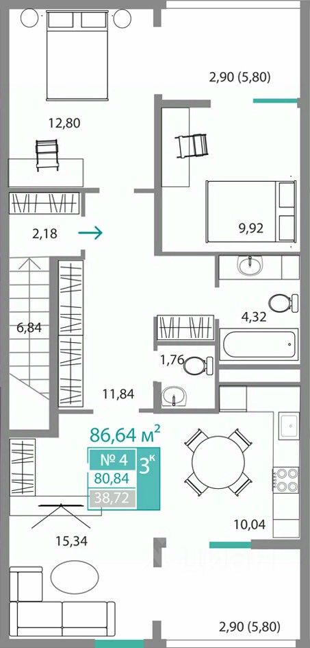 Продаётся 3-комнатная квартира в строящемся доме (6 этап (Секция М)), срок сдачи: I-кв. 2027, общей площадью 80.84 кв.м., на 2 этаже. Новый жилой квартал "Горизонты" от застройщика "Монолит" расположен по адресу Республика Крым, Симферополь, микрорайон Крымская роза.