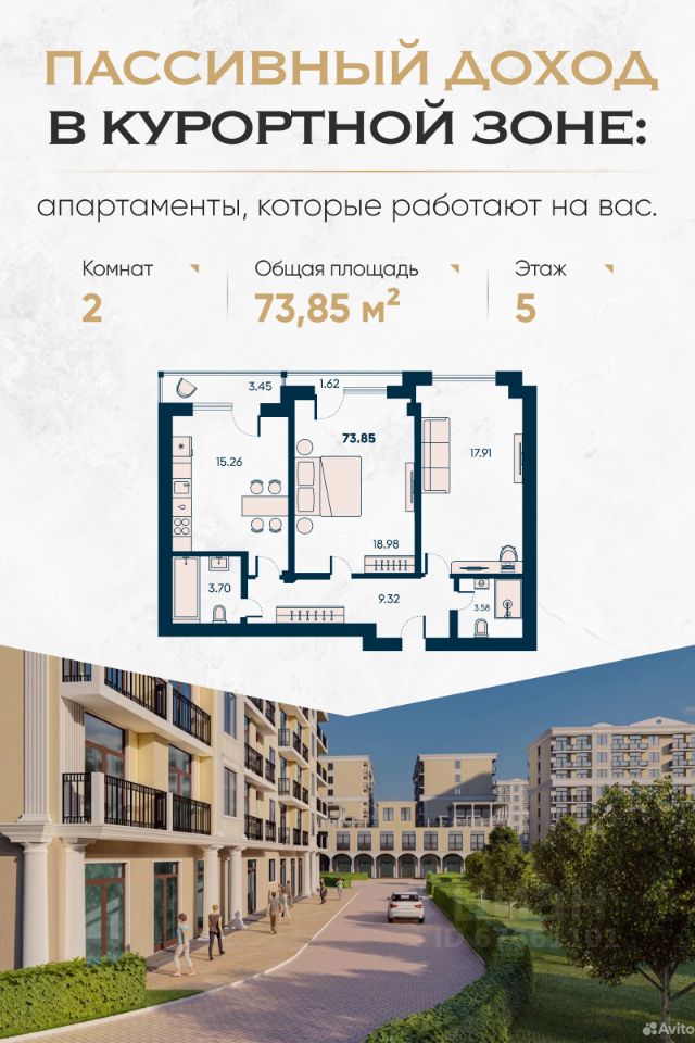 Апартаменты у моря Новая Керкинтида с гарантированной доходностью и рассрочкой. Надёжный способ сохранить капитал и получать пассивный доход — курортная недвижимость на первой линии у моря. Апарт-комплекс в экологически чистом районе Евпатории — это инвестиция, которая работает круглый год. Главные преимущества: Первая береговая линия Гарантированный пассивный доход Возможность отдыха в собственных апартаментах Рассрочка до 90% — без переплат Безопасная сделка через эскроу-счёт Почему это выгодно: Район с высоким спросом на аренду — Евпатория стабильно входит в топ направлений семейного и оздоровительного туризма. Цены на курортную недвижимость в Крыму растут — вы успеваете купить до следующей волны удорожания. Формат "отдых плюс доход" — апартаменты можно сдавать через управляющую компанию или использовать самостоятельно. Полностью готовая среда — магазины, кафе, рестораны, прогулочные зоны, ландшафтный парк, двор без машин, спортивные и детские площадки. Вид на море уже с 4 этажа — ощущение курорта не только в инфраструктуре, но и в каждом окне. Для спокойной старости или будущего семьи: Комплекс подойдёт тем, кто хочет иметь надёжный резерв на случай любых сценариев — для себя, детей, внуков или просто как подушку безопасности. Срок сдачи: IV квартал 2026 года. Покупка без скрытых комиссий, с понятной рассрочкой и прозрачными условиями.