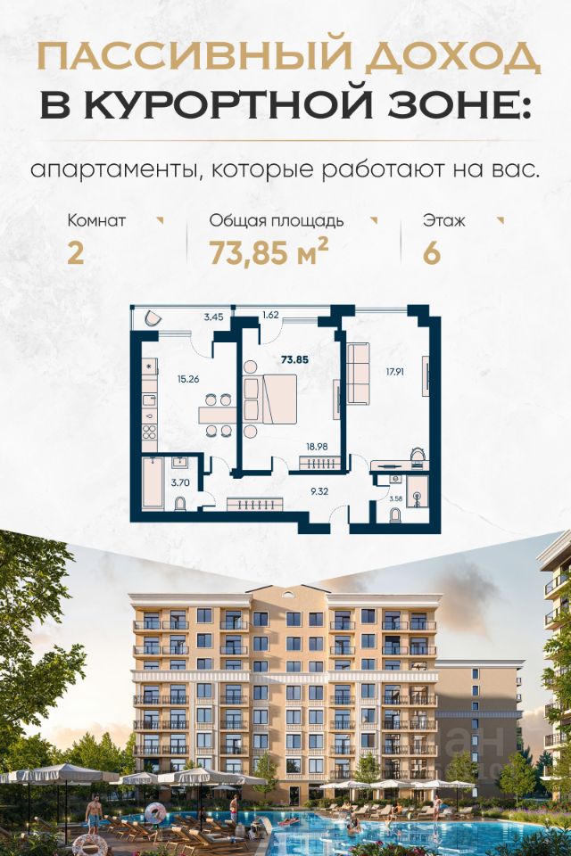 Формат "отдых плюс доход" — апартаменты можно сдавать через управляющую компанию или использовать самостоятельно.