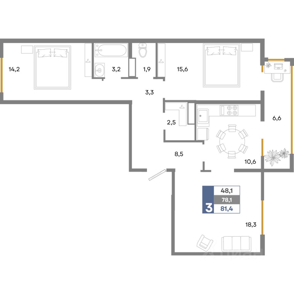 Общая площадь81,4 м²