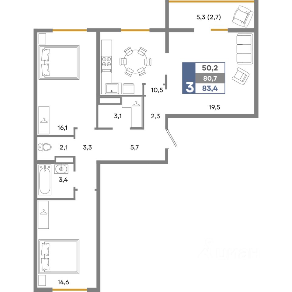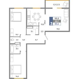 Общая площадь83,4 м²