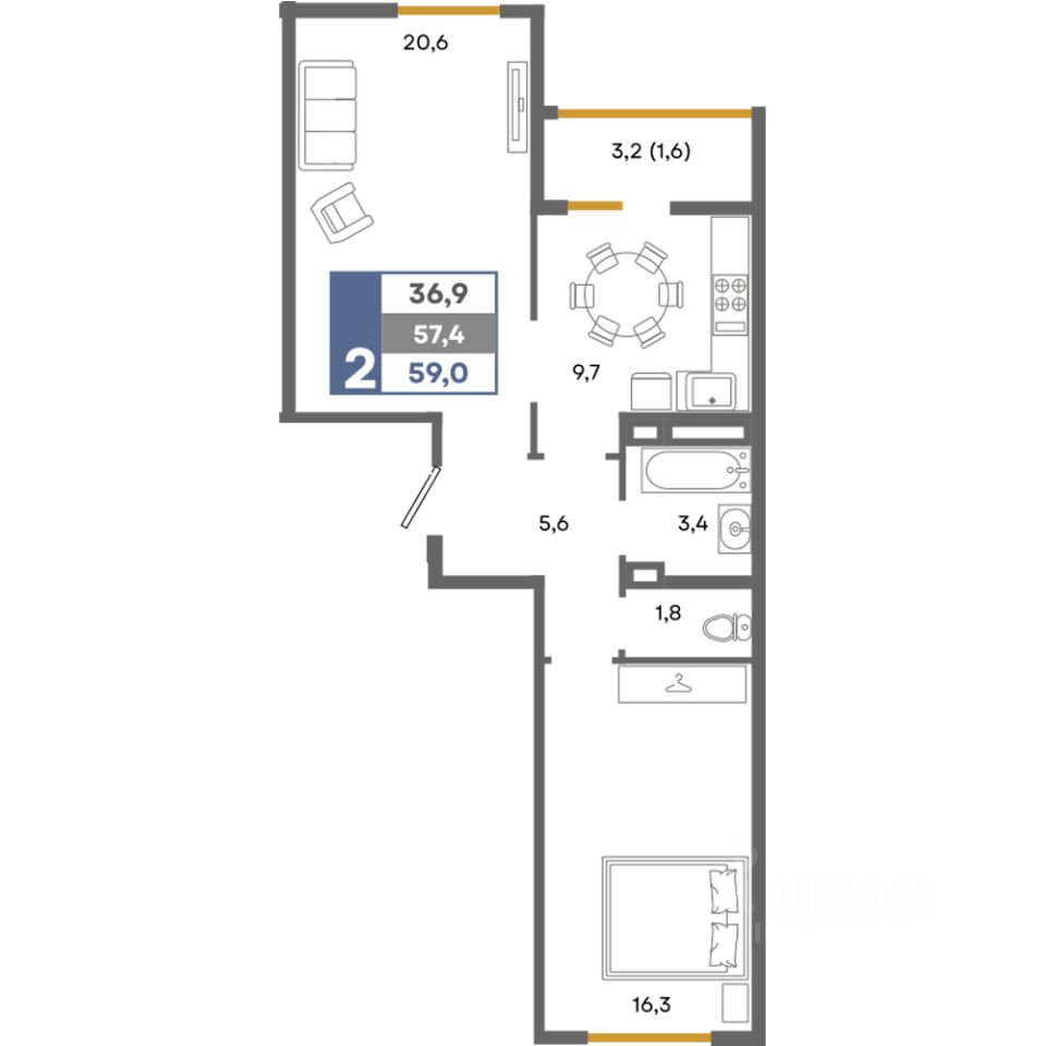 Общая площадь59 м²