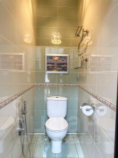В квартире есть гардеробная комната и кладовка, которую возможно оборудовать под постирочную или сауну. Санузел раздельный.
