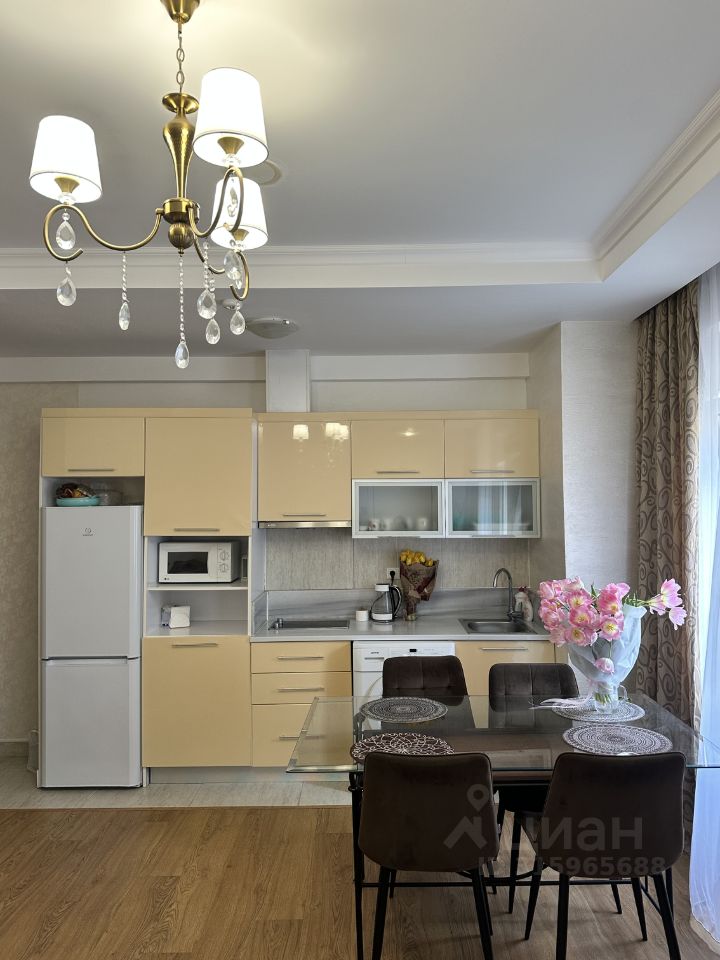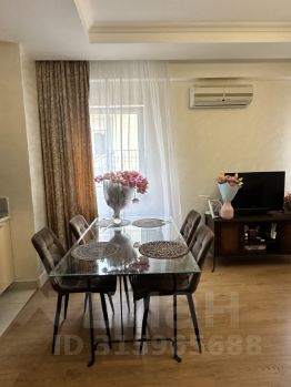 Кухня - гостиная 34 кв м , спальня 19 м , балкон с красивым видом в сторону моря .