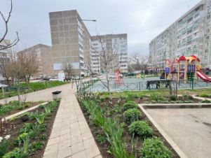 Двор после реконструкции -много парковочных мест,так же есть большая детская площадка.