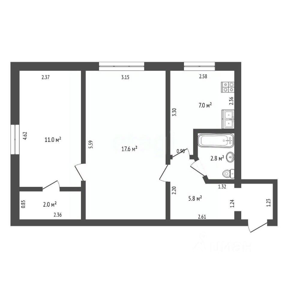 Санузел совмещенный. Центральное отопление и газовая колонка обеспечивают вас теплом и горячей водой в любое время года.