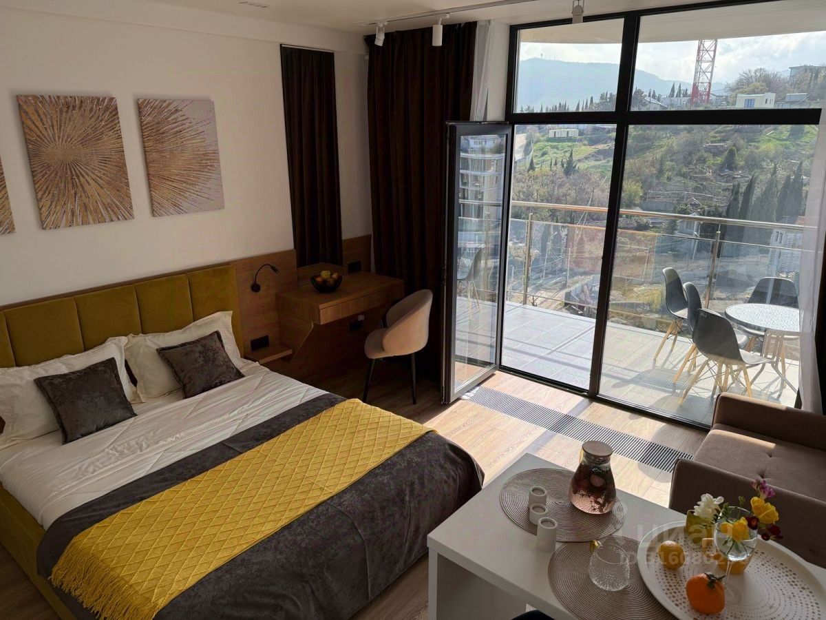 Предлагаем стильные апартаменты-студию (33 м²) в Алуште, в жк Бизнес-класса "Крымская Резиденция"! 13 этаж с панорамным видом на горы и море!