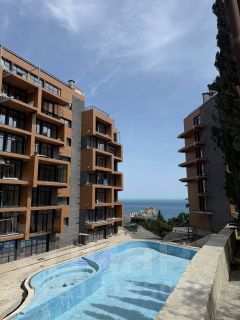 Апартамент располагает уединённой и приватной атмосферой, а виды из собственных террас само очарование: живописнейшая гора Болгатура, уютный внутренний двор с кипарисовой и пальмовой аллеями, панорамы уникального дизайн-кода фасадов Комплекса!Апартамент уникальный: с двух террас просматривается всё разнообразие видовых характеристик: море Черное, гора Аюдаг (Медведь-гора), виноградные плантации, кипарисовая и пальмовая аллеи, элементы внутриинфраструктурного благоустройства — бассейн, лаунж-зоны, прогулочные аллеи, гора Болгатура.