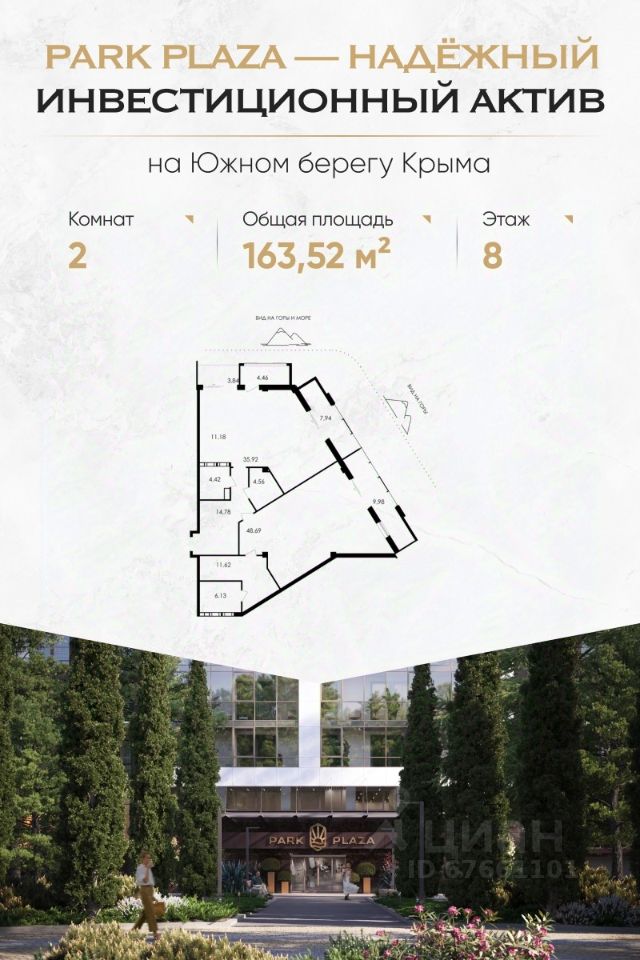 Комплекс Park Plaza расположен в престижном районе Алушты — в Приморском парке, в 150 метрах от пляжа. Это современный клубный дом с закрытой территорией, продуманной инфраструктурой и высоким уровнем сервиса. Преимущества для инвестора Доходность от 30% годовых Собственная сервисная компания: сдача в аренду, клининг, трансферы, управление объектом Формат "купил — и получаешь доход": никакой рутины 100% апартаментов с видами на море, парк или горы Беспроцентная рассрочка до сдачи (4 квартал 2025 г.) ФЗ-214, эскроу-счета — безопасность сделки гарантирована Что внутри — Панорамные окна, высокие потолки, балконы и террасы — Гибкие планировки: от однокомнатных до просторных трёхкомнатных и юнитов под деление — Предчистовая отделка: вы сами выбираете стиль интерьера Инфраструктура комплекса — Подземный паркинг с лифтом — Панорамная терраса 1000 м² с лаундж-зонами, SPA, джакузи, йогой и летним кинотеатром — Тренажёрный зал, ресторан, детская игровая, химчистка — Безопасность 24/7, видеонаблюдение, электронные ключи Локация — центр курортной жизни — Приморский парк — 10 метров — Море и пляжи — 150 метров — Набережная и рестораны — 3 минуты пешком — Спортивный центр сборных команд РФ — 200 метров — До Ялты — 30 минут, до Крымского моста — 3,5 часа Почему выбирают Park Plaza: — Умеренная конкуренция — ограниченное предложение премиального сегмента в Алуште — Локация работает на вас — туристический спрос растёт ежегодно — Можно совмещать личный отдых и аренду — all inclusive-сервис это позволяет — Рассрочка до конца строительства — без банков и процентов Успейте купить до роста цен — первый этап продаж уже стартовал. Оставьте заявку — отправим вам: Портфель с планировками и ценами Инвестиционный расчёт с окупаемостью Презентацию с визуализациями и ответами на частые вопросы Park Plaza — место, где отдых превращается в доход. Для жизни. Для пенсии. Для капитала.