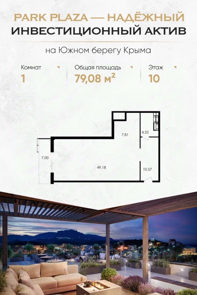Комплекс Park Plaza расположен в престижном районе Алушты — в Приморском парке, в 150 метрах от пляжа. Это современный клубный дом с закрытой территорией, продуманной инфраструктурой и высоким уровнем сервиса. Преимущества для инвестора Доходность от 30% годовых Собственная сервисная компания: сдача в аренду, клининг, трансферы, управление объектом Формат "купил — и получаешь доход": никакой рутины 100% апартаментов с видами на море, парк или горы Беспроцентная рассрочка до сдачи (4 квартал 2025 г.) ФЗ-214, эскроу-счета — безопасность сделки гарантирована Что внутри — Панорамные окна, высокие потолки, балконы и террасы — Гибкие планировки: от однокомнатных до просторных трёхкомнатных и юнитов под деление — Предчистовая отделка: вы сами выбираете стиль интерьера Инфраструктура комплекса — Подземный паркинг с лифтом — Панорамная терраса 1000 м² с лаундж-зонами, SPA, джакузи, йогой и летним кинотеатром — Тренажёрный зал, ресторан, детская игровая, химчистка — Безопасность 24/7, видеонаблюдение, электронные ключи Локация — центр курортной жизни — Приморский парк — 10 метров — Море и пляжи — 150 метров — Набережная и рестораны — 3 минуты пешком — Спортивный центр сборных команд РФ — 200 метров — До Ялты — 30 минут, до Крымского моста — 3,5 часа Почему выбирают Park Plaza: — Умеренная конкуренция — ограниченное предложение премиального сегмента в Алуште — Локация работает на вас — туристический спрос растёт ежегодно — Можно совмещать личный отдых и аренду — all inclusive-сервис это позволяет — Рассрочка до конца строительства — без банков и процентов Успейте купить до роста цен — первый этап продаж уже стартовал. Оставьте заявку — отправим вам: Портфель с планировками и ценами Инвестиционный расчёт с окупаемостью Презентацию с визуализациями и ответами на частые вопросы Park Plaza — место, где отдых превращается в доход. Для жизни. Для пенсии. Для капитала.