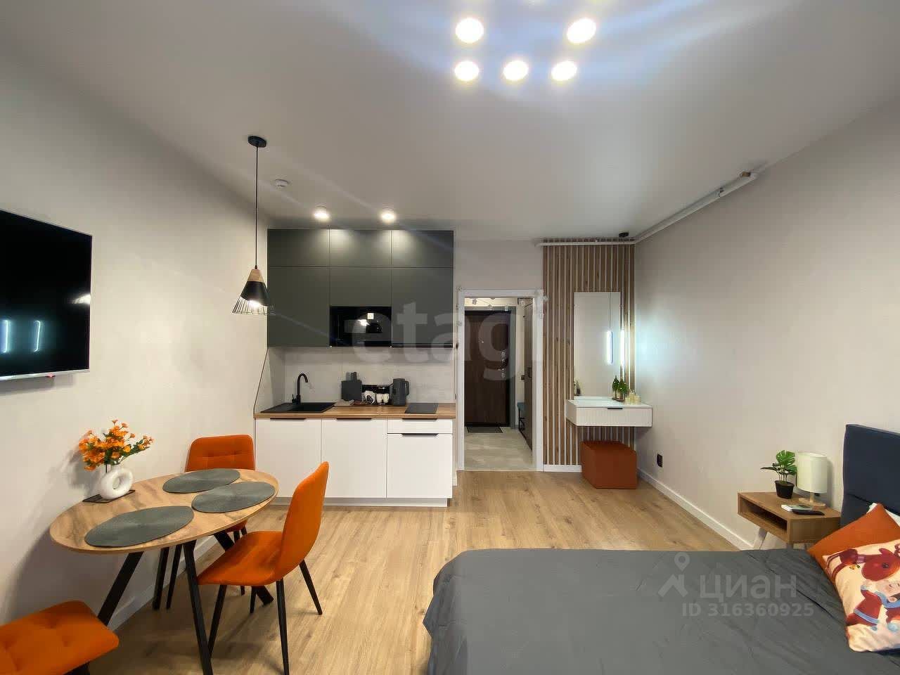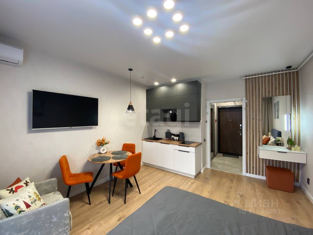 Студия предлагается с отделкой по дизайн проекту, а так же со всей мебелью и техникой, полностью оборудована для жизни необходимой атрибутикой, просто заселяйтесь и живите.