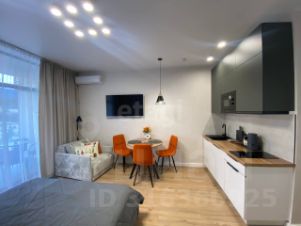 Студия с видом на море в современном жилом комплексе Крымская Резиденция, расположенном в городе Алушта на побережье Черного моря.