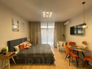 Общая площадь студии составляет 31,5 квадратных метра. Квартира находится на 14 этаже 16-этажного здания, что обеспечивает прекрасный вид на море и город.