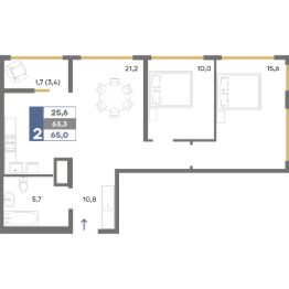 Общая площадь65 м²