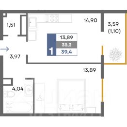 Общая площадь39,4 м²