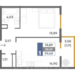 Общая площадь39,4 м²