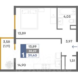 Общая площадь39,4 м²
