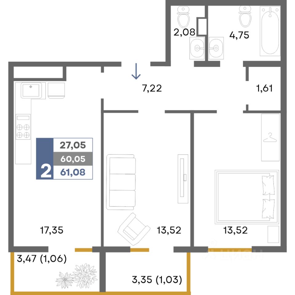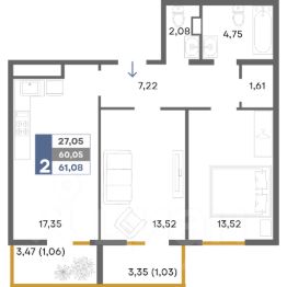 Общая площадь61,08 м²
