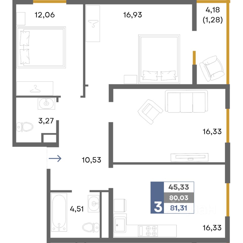 Общая площадь81,31 м²