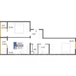 Общая площадь58,49 м²