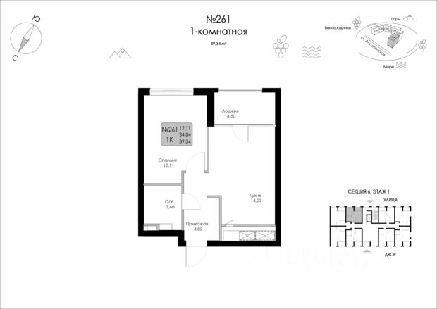 Продается квартира общей площадью 39,34 м2 в комплексе бизнес-класса "Долина Роз" в г. Судак.