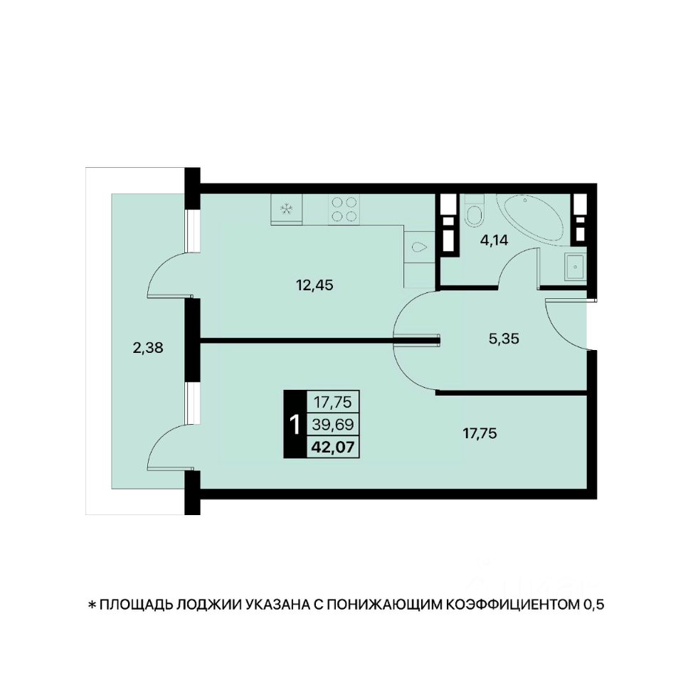 В продаже квартира 42,07 м2 в эко-квартале Партенит Парк!