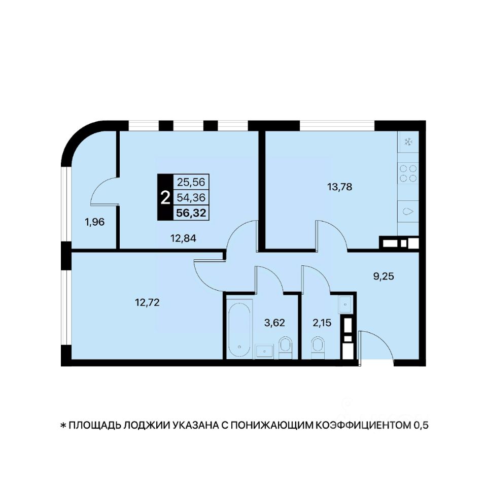 В продаже квартира 56,32 м2 в эко-квартале Партенит Парк!