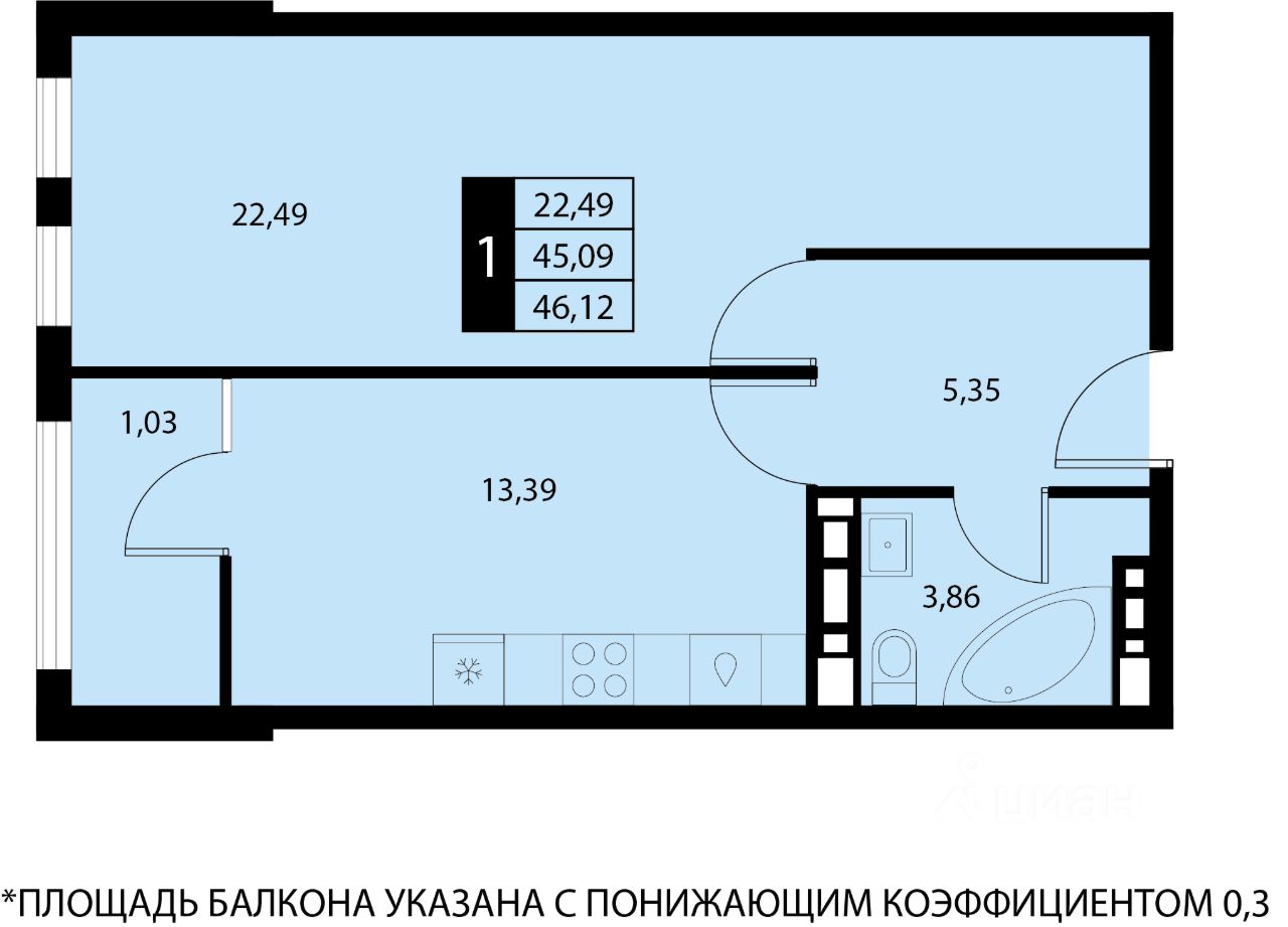 В продаже квартира 46,12 м2 в эко-квартале Партенит Парк!