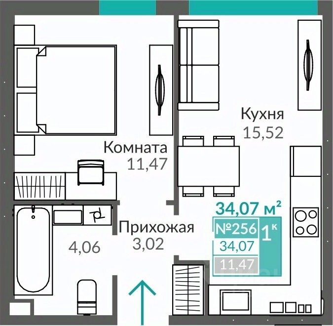Продаётся 1-комнатная квартира в строящемся доме (С7), срок сдачи: III-кв. 2027, общей площадью 34.07 кв.м., на 1 этаже. Жилой квартал "Абрикос" - начало яркой истории жизни в прогрессивном районе Симферополя - Семья городских кварталов "Крымская Роза".
