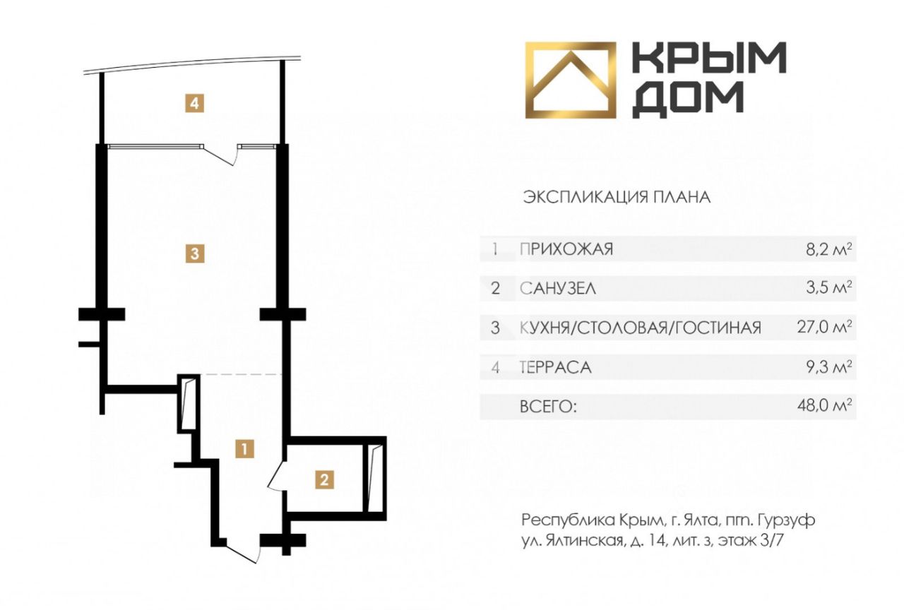 Апартаменты (45 м²) расположены на 3 этаже 7-этажного здания. Ключевыми преимуществами апартаментов являются — полная готовность к проживанию, терраса с шикарными видами и расположение в престижном комплексе.