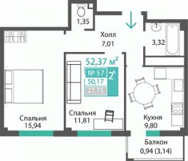 Продаётся 2-комнатная квартира в строящемся доме (ЭТАП 4, СЕКЦИИ Г1, Г2, Г3, Г4), срок сдачи: III-кв. 2028, общей площадью 50.17 кв.м., на 2 этаже. Новый жилой комплекс "Семейный квартал ПРОПОЛИС" от застройщика "Монолит" расположен по адресу: Республика Крым, Симферопольский район, с. Мирное, ул. Учительская