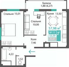Продаётся 2-комнатная квартира в строящемся доме (ЭТАП 2, СЕКЦИИ Б1, Б2, Б3, Б4), срок сдачи: III-кв. 2028, общей площадью 53.59 кв.м., на 3 этаже. Новый жилой комплекс "Семейный квартал ПРОПОЛИС" от застройщика "Монолит" расположен по адресу: Республика Крым, Симферопольский район, с. Мирное, ул. Учительская