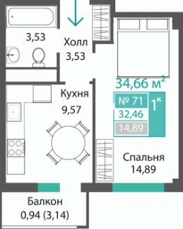 Продаётся 1-комнатная квартира в строящемся доме (ЭТАП 1, СЕКЦИИ А1, А2, А3), срок сдачи: III-кв. 2028, общей площадью 32.46 кв.м., на 7 этаже. Новый жилой комплекс "Семейный квартал ПРОПОЛИС" от застройщика "Монолит" расположен по адресу: Республика Крым, Симферопольский район, с. Мирное, ул. Учительская