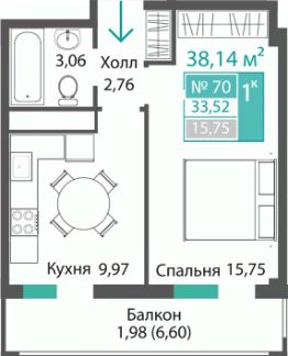 Продаётся 1-комнатная квартира в строящемся доме (ЭТАП 3, СЕКЦИИ В1, В2, В3), срок сдачи: III-кв. 2028, общей площадью 33.52 кв.м., на 7 этаже. Новый жилой комплекс "Семейный квартал ПРОПОЛИС" от застройщика "Монолит" расположен по адресу: Республика Крым, Симферопольский район, с. Мирное, ул. Учительская