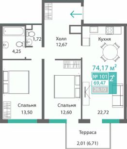 Продаётся 2-комнатная квартира в строящемся доме (Этап 1), срок сдачи: I-кв. 2028, общей площадью 69.47 кв.м., на 1 этаже. Новый жилой комплекс от ГК "Монолит" по адресу: Республика Крым, Симферополь, улица Святителя Гурия