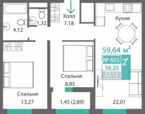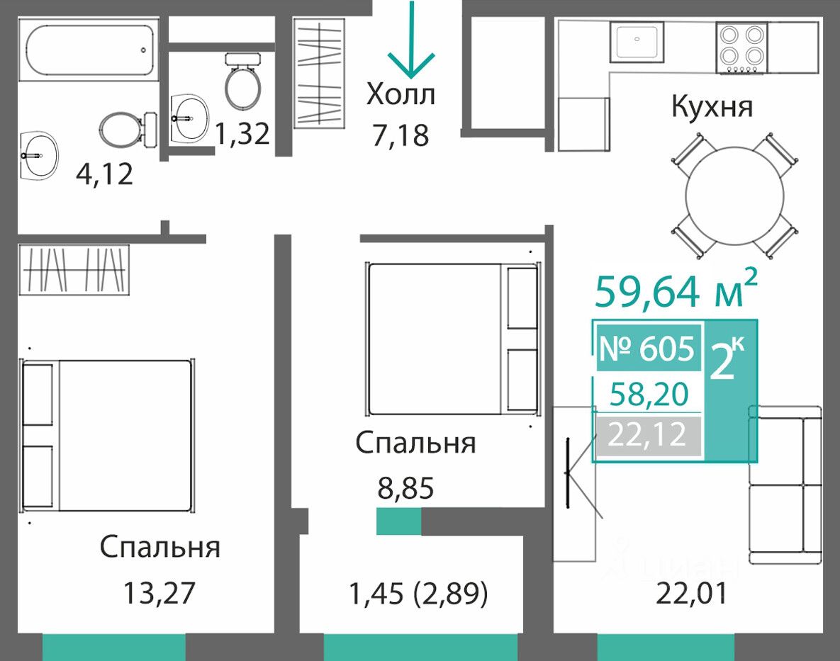 Продаётся 2-комнатная квартира в строящемся доме (Этап 1), срок сдачи: I-кв. 2028, общей площадью 58.2 кв.м., на 6 этаже. Новый жилой комплекс от ГК "Монолит" по адресу: Республика Крым, Симферополь, улица Святителя Гурия