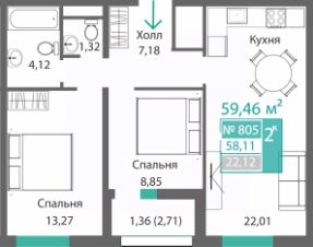 Продаётся 2-комнатная квартира в строящемся доме (Этап 1), срок сдачи: I-кв. 2028, общей площадью 58.11 кв.м., на 8 этаже. Новый жилой комплекс от ГК "Монолит" по адресу: Республика Крым, Симферополь, улица Святителя Гурия