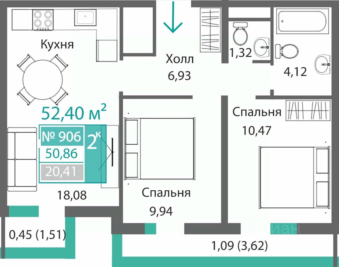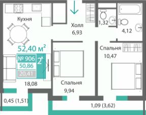 52,4 м²