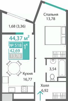 Продаётся 1-комнатная квартира в строящемся доме (Этап 1), срок сдачи: I-кв. 2028, общей площадью 42.69 кв.м., на 5 этаже. Новый жилой комплекс от ГК "Монолит" по адресу: Республика Крым, Симферополь, улица Святителя Гурия