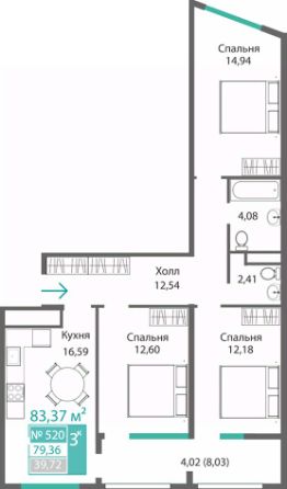 Продаётся 3-комнатная квартира в строящемся доме (Этап 1), срок сдачи: I-кв. 2028, общей площадью 79.36 кв.м., на 5 этаже. Новый жилой комплекс от ГК "Монолит" по адресу: Республика Крым, Симферополь, улица Святителя Гурия
