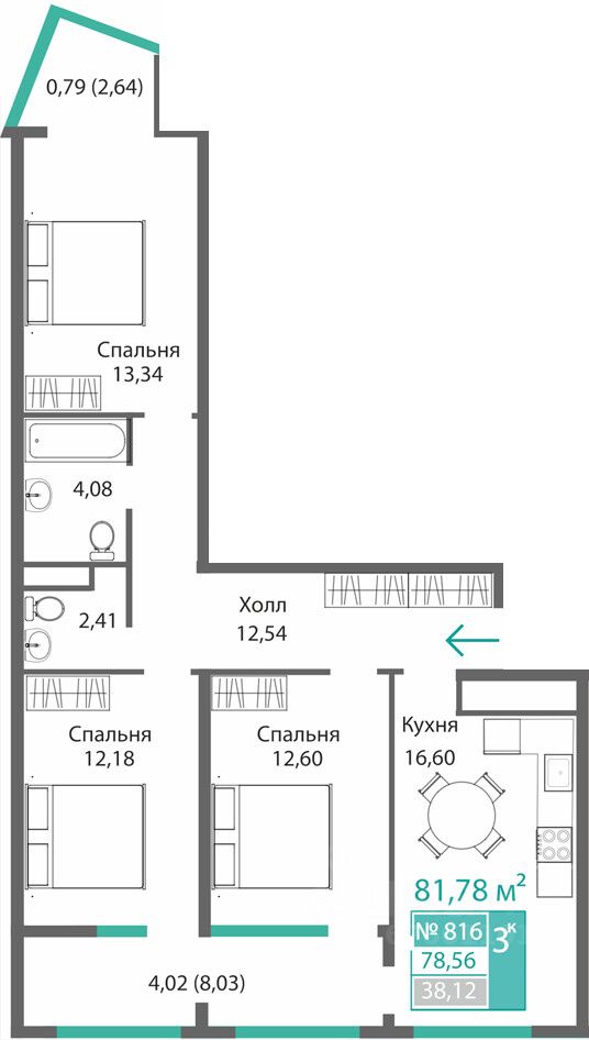 Продаётся 3-комнатная квартира в строящемся доме (Этап 1), срок сдачи: I-кв. 2028, общей площадью 78.56 кв.м., на 8 этаже. Новый жилой комплекс от ГК "Монолит" по адресу: Республика Крым, Симферополь, улица Святителя Гурия