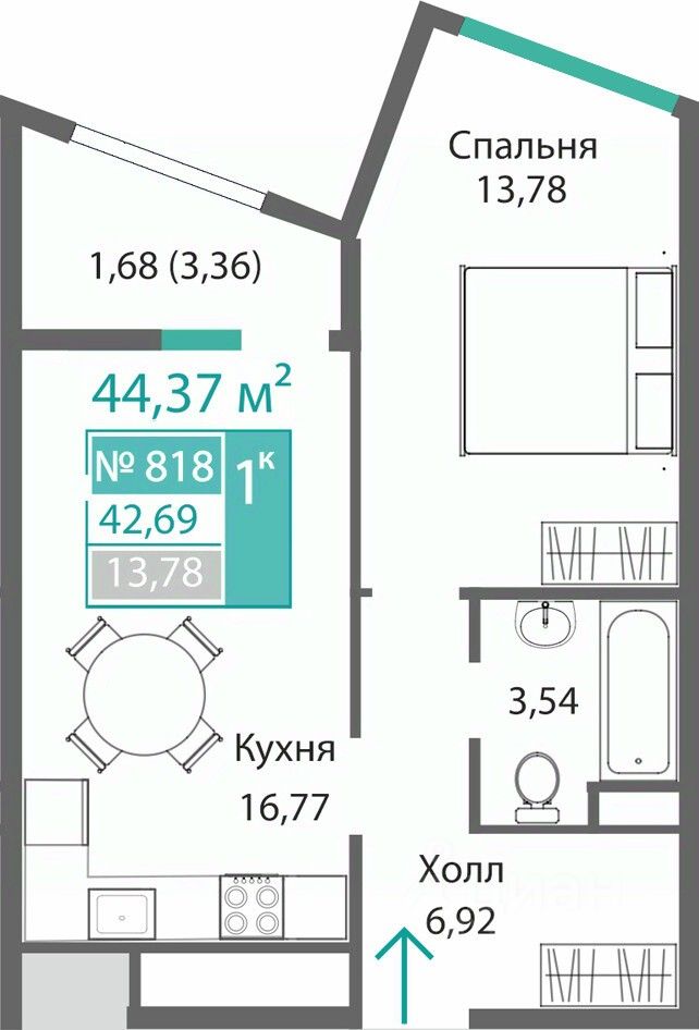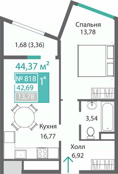 Продаётся 1-комнатная квартира в строящемся доме (Этап 1), срок сдачи: I-кв. 2028, общей площадью 42.69 кв.м., на 8 этаже. Новый жилой комплекс от ГК "Монолит" по адресу: Республика Крым, Симферополь, улица Святителя Гурия
