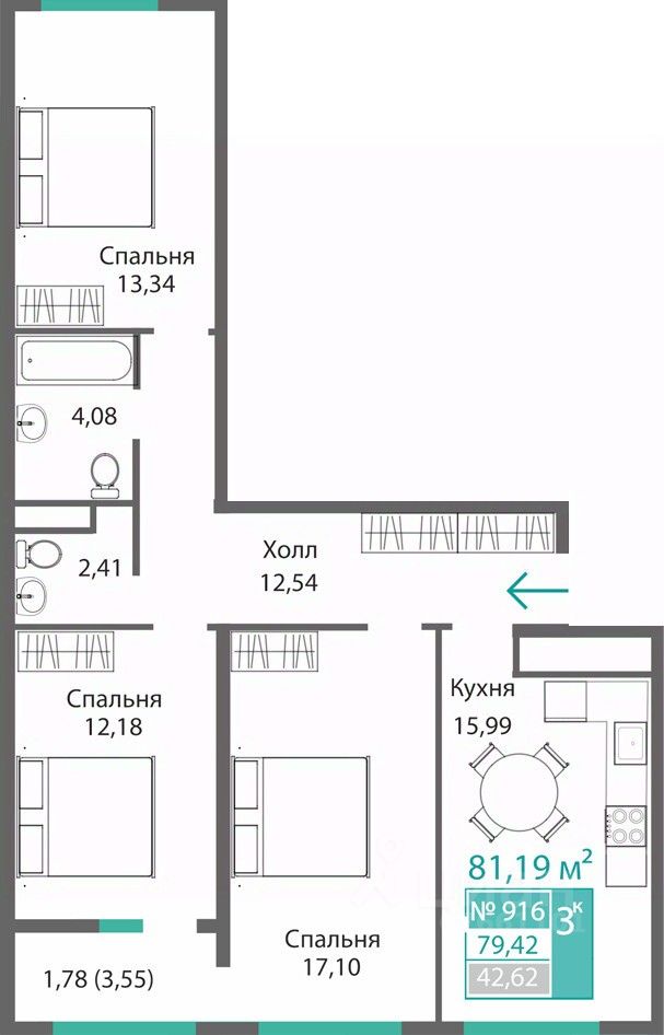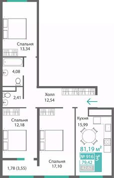 Продаётся 3-комнатная квартира в строящемся доме (Этап 1), срок сдачи: I-кв. 2028, общей площадью 79.42 кв.м., на 9 этаже. Новый жилой комплекс от ГК "Монолит" по адресу: Республика Крым, Симферополь, улица Святителя Гурия