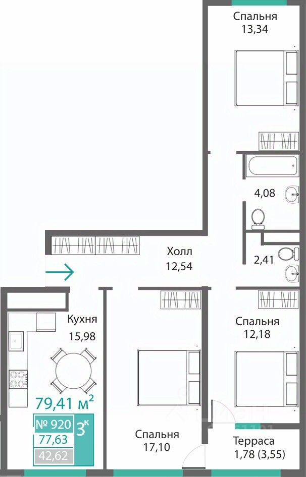 Продаётся 3-комнатная квартира в строящемся доме (Этап 1), срок сдачи: I-кв. 2028, общей площадью 79.41 кв.м., на 9 этаже. Новый жилой комплекс от ГК "Монолит" по адресу: Республика Крым, Симферополь, улица Святителя Гурия