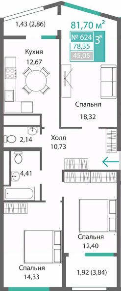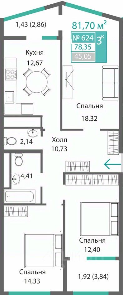 Продаётся 3-комнатная квартира в строящемся доме (Этап 1), срок сдачи: I-кв. 2028, общей площадью 78.35 кв.м., на 6 этаже. Новый жилой комплекс от ГК "Монолит" по адресу: Республика Крым, Симферополь, улица Святителя Гурия