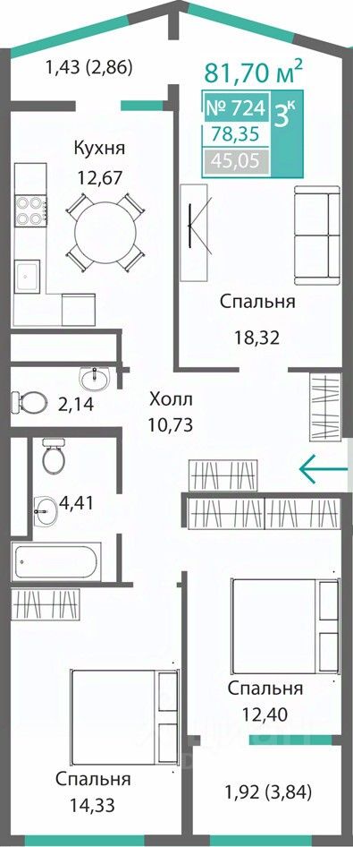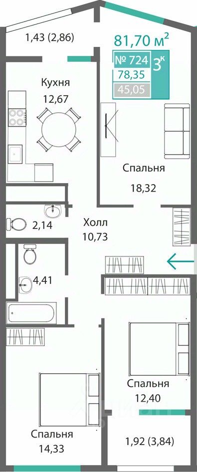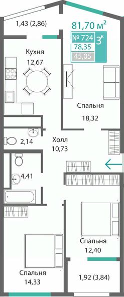 Продаётся 3-комнатная квартира в строящемся доме (Этап 1), срок сдачи: I-кв. 2028, общей площадью 78.35 кв.м., на 7 этаже. Новый жилой комплекс от ГК "Монолит" по адресу: Республика Крым, Симферополь, улица Святителя Гурия