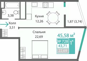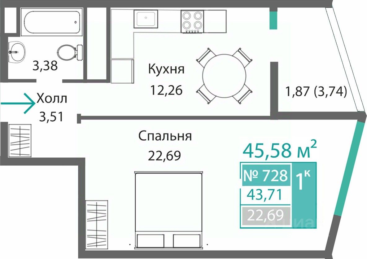 Продаётся 1-комнатная квартира в строящемся доме (Этап 1), срок сдачи: I-кв. 2028, общей площадью 43.71 кв.м., на 7 этаже. Новый жилой комплекс от ГК "Монолит" по адресу: Республика Крым, Симферополь, улица Святителя Гурия