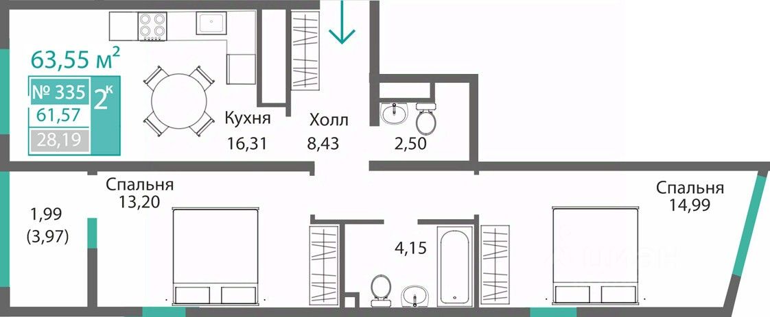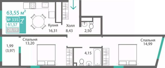 Продаётся 2-комнатная квартира в строящемся доме (Этап 1), срок сдачи: I-кв. 2028, общей площадью 61.57 кв.м., на 3 этаже. Новый жилой комплекс от ГК "Монолит" по адресу: Республика Крым, Симферополь, улица Святителя Гурия